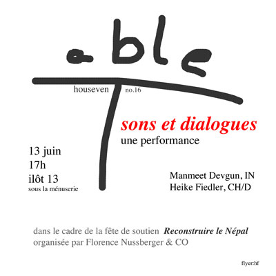 The performance of Manmeet Devgun and Heike Fiedler is the result of their meeting, having both realised a residence