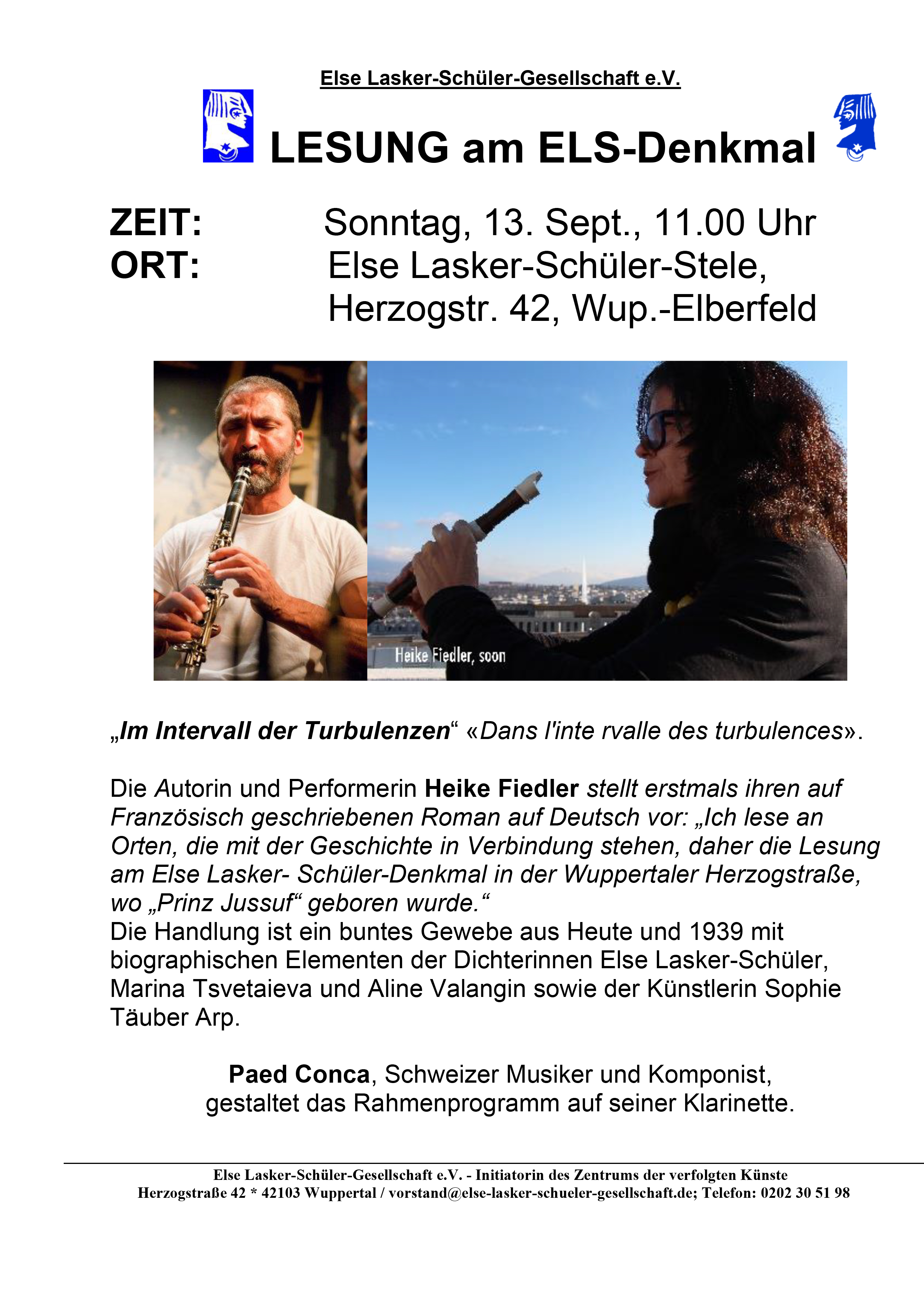 - Wuppertal, via der Else-Laker-Schüler Gesellschaft,10 Mai.